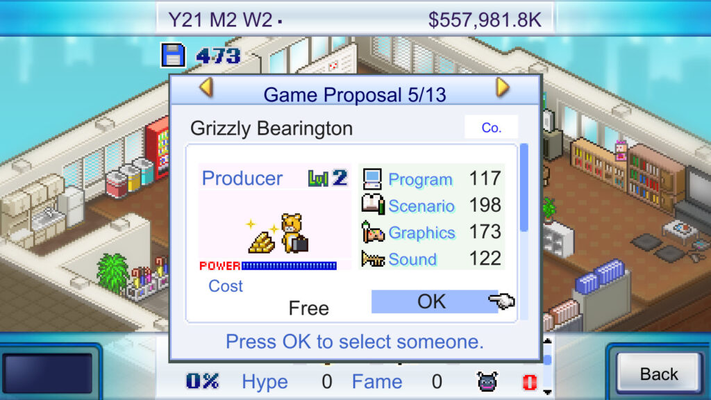 - Lối chơi cực kỳ gây nghiện: Game Dev Story có một vòng lặp gameplay hoàn hảo và lôi cuốn. Bạn sẽ trải qua quy trình phát triển game, từ việc lựa chọn thể loại và chủ đề, đến việc phân công nhân sự và quản lý ngân sách. Cảm giác hồi hộp khi chờ đợi điểm đánh giá và doanh thu của một tựa game do chính mình tạo ra là một trải nghiệm không thể quên.