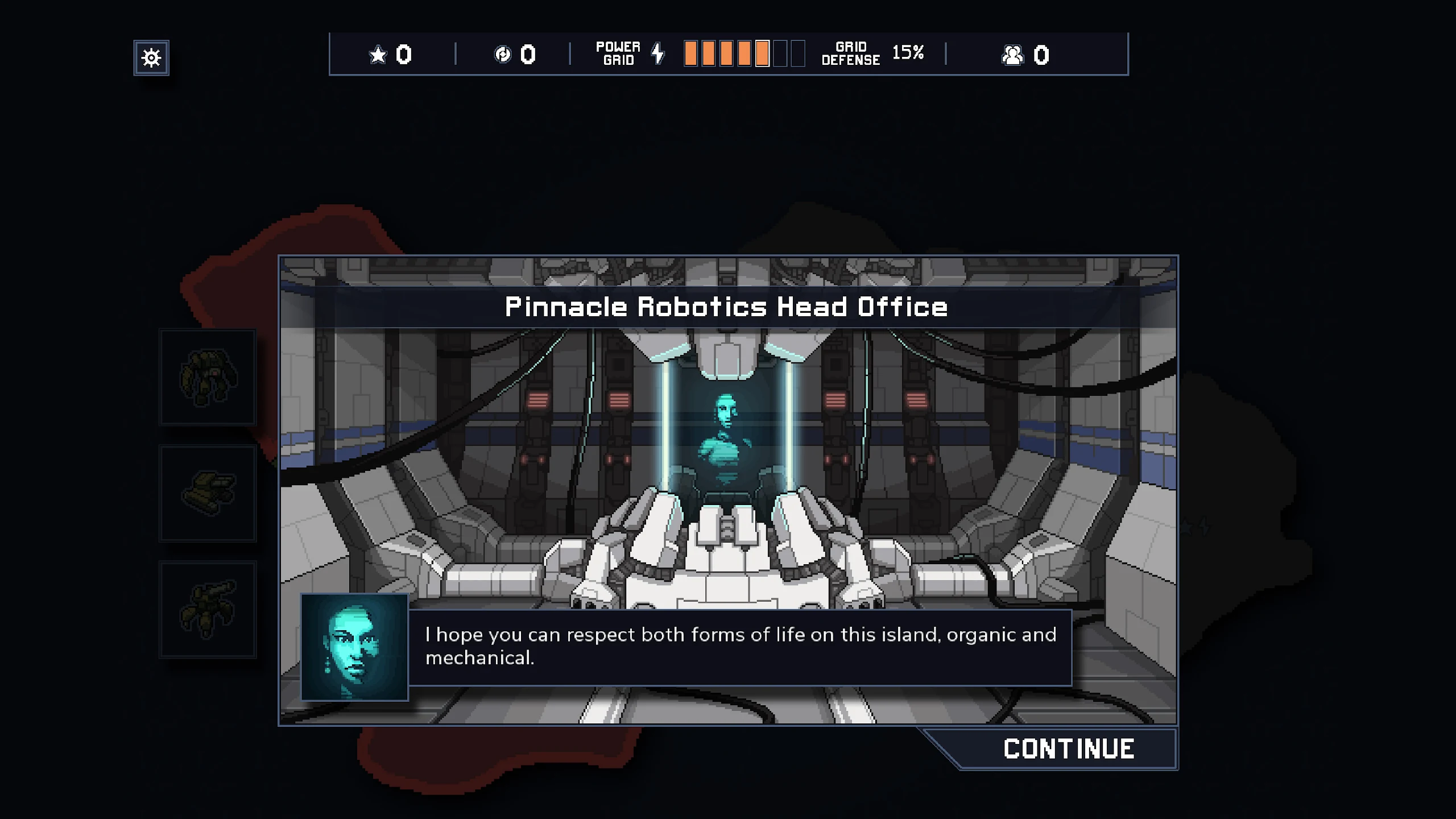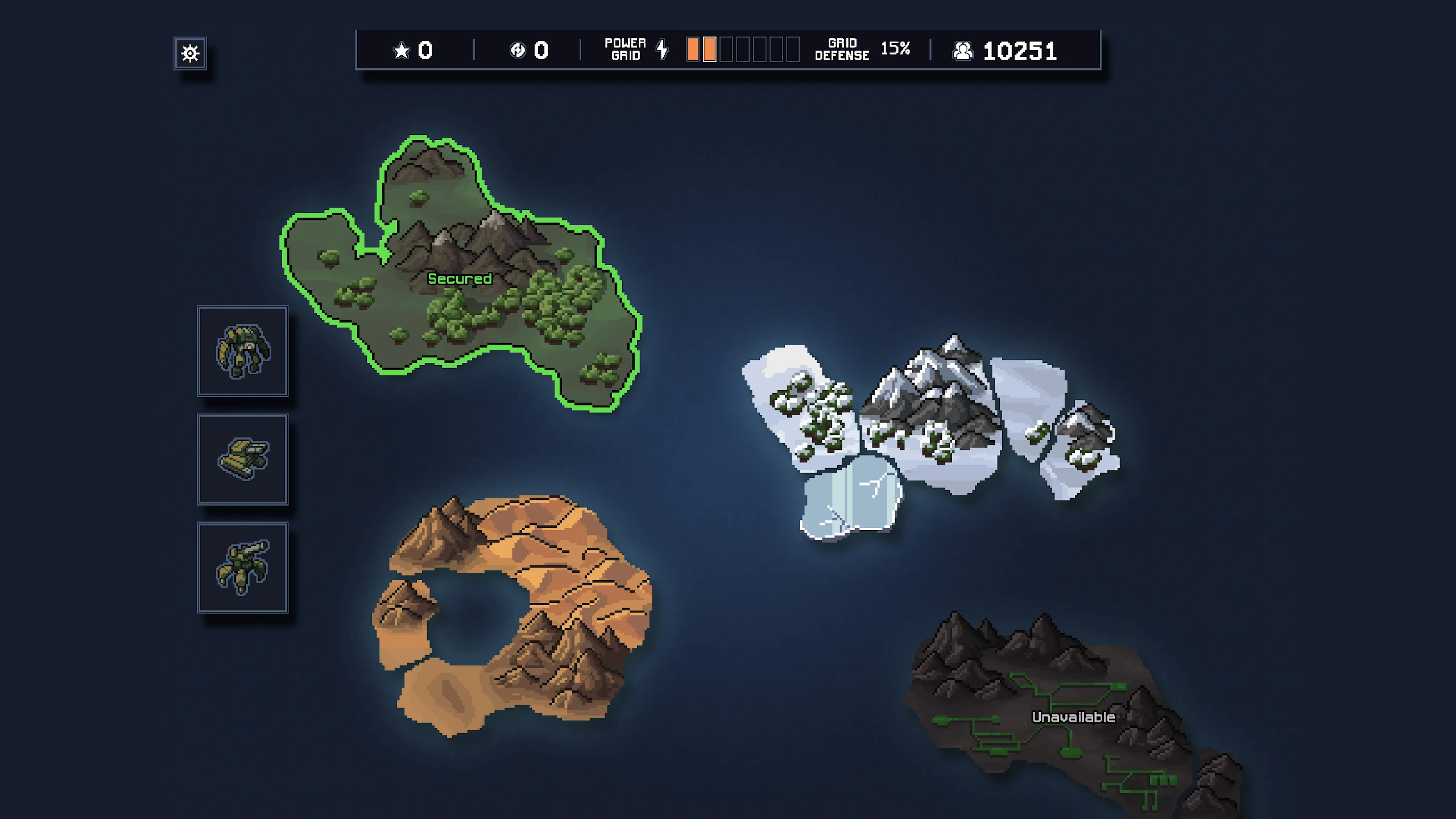 Cơ chế Đa vũ trụ (Multiverse): Bạn sẽ chỉ huy một tiểu đội gồm 3 Mechs để bảo vệ các thành phố dân sự còn sót lại trên 4 hòn đảo thuộc quyền kiểm soát của các tập đoàn lớn. Nếu bạn thất bại (Năng lượng Lưới điện bị phá hủy hoàn toàn), thế giới đó sẽ sụp đổ. Tuy nhiên, game không kết thúc ở đó. Bạn sẽ gửi một phi công sống sót nhảy qua một dòng thời gian khác (Timeline) để làm lại từ đầu, mang theo kinh nghiệm và kỹ năng để tiếp tục cuộc chiến cứu rỗi một Trái Đất song song.