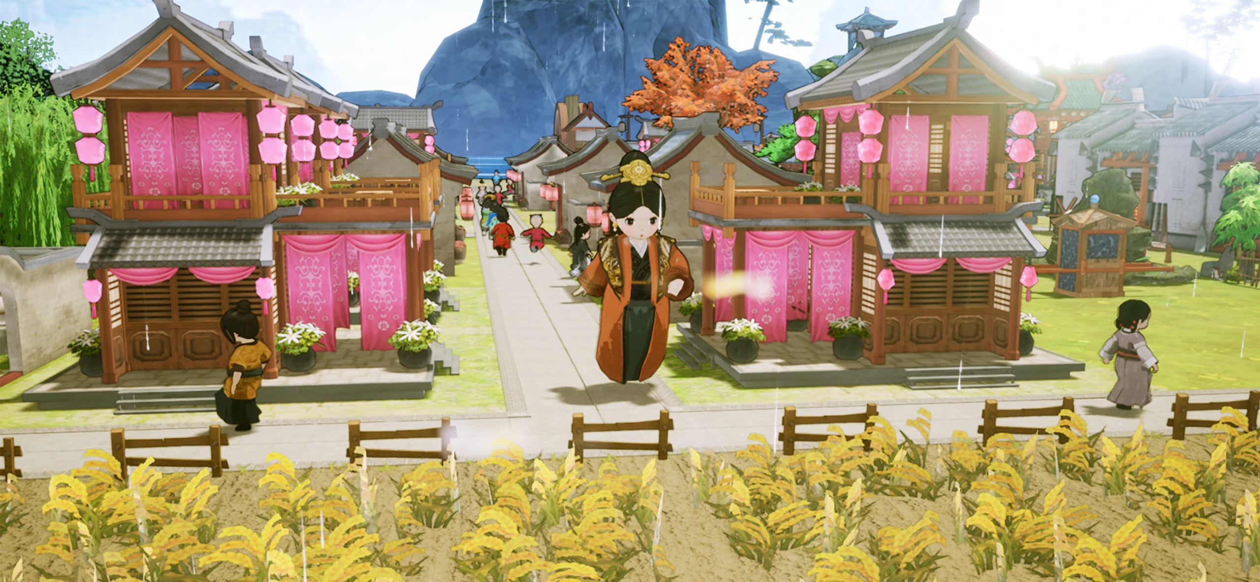 • Sinh tồn & Thủ thành (Tower Defense): Thị trấn càng giàu có, yêu quái (Yao) sẽ càng kéo đến đông. Thỉnh thoảng, sẽ có những đợt quái vật khổng lồ tấn công làng mạc. Bạn phải xây dựng tường thành, tháp canh, chế tạo các con rối chiến đấu (Battle Puppets) và thậm chí tự tay tung phép thuật (sét, lửa) từ trên trời xuống để bảo vệ con dân của mình.